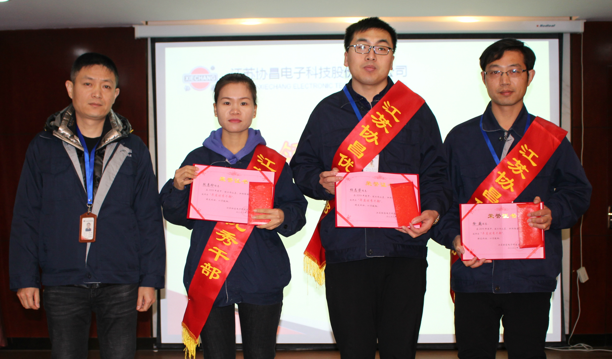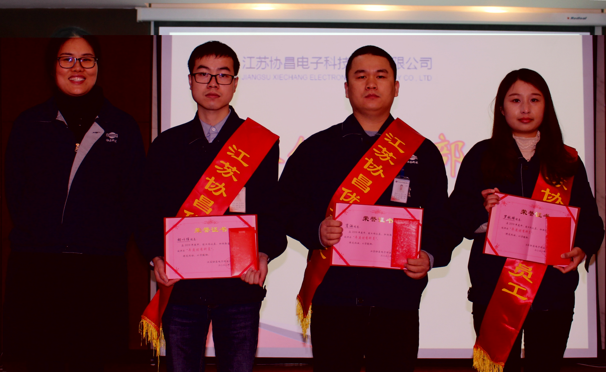 會議開始,隆重表彰了2019年度優(yōu)秀干部和優(yōu)秀員工。營運中心總監(jiān)蔡云波在宣讀表彰決定時,代表公司要求受表彰的同志要戒驕戒躁、繼續(xù)努力、再創(chuàng)佳績,希望全體員工向受表彰的先進學習,愛崗敬業(yè)、勇挑重擔,為公司的發(fā)展做出更大更新的貢獻。公司營銷中心總監(jiān)顧韌、財務(wù)兼制造中心總監(jiān)王紅梅、研發(fā)中心總監(jiān)張亮分別為“優(yōu)秀干部”、“優(yōu)秀科員”、“優(yōu)秀員工”頒獎。