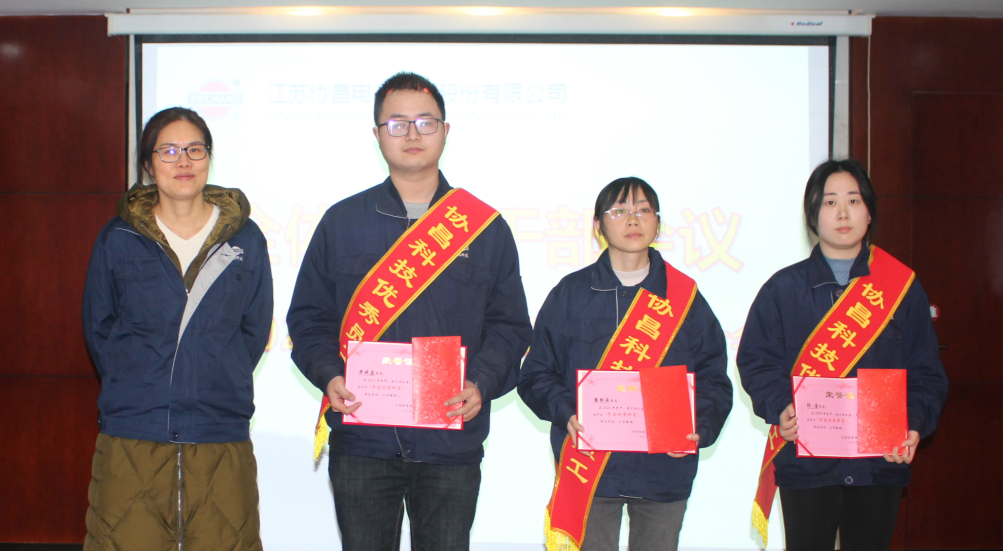 會議第一議程,隆重表彰了2020年度優(yōu)秀干部和員工。營運中心總監(jiān)蔡云波宣讀表彰決定,并希望受表彰的同志要戒驕戒躁、繼續(xù)努力、再創(chuàng)佳績;希望全體員工向受表彰的學(xué)習(xí),愛崗敬業(yè)、勇挑重擔(dān),為公司的發(fā)展做出更大更新的貢獻。公司營銷中心總監(jiān)顧韌、財務(wù)兼制造中心總監(jiān)王紅梅、研發(fā)中心總監(jiān)張亮分別為“優(yōu)秀干部”、“優(yōu)秀科員”、“優(yōu)秀員工”頒發(fā)榮譽證書及獎金。